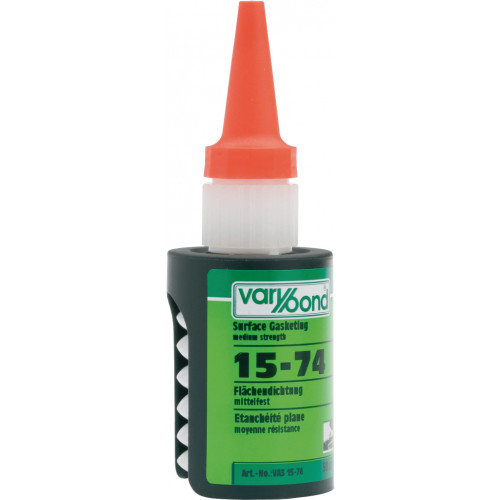 Varybond 15-74. Durificare rapida, garnitura universala de etansare pentru flanse si suprafete, în special adecvate pentru aplicarea pe metale inactive. Semi-flexibil. Vâscozitatea mai mare asigură proprietăți îmbunătățite de umplere a spațiilor goale. Forta adezivă scăzută a produsului asigură îndepărtarea ușoară a pieselor cu unelte standard. Aplicare rapidă și ușoară prin intermediul rolelor de vopsea sau prin serigrafie. Pelicula de etanșare rezistă la un randament ductil înainte de spargere peste 100%.